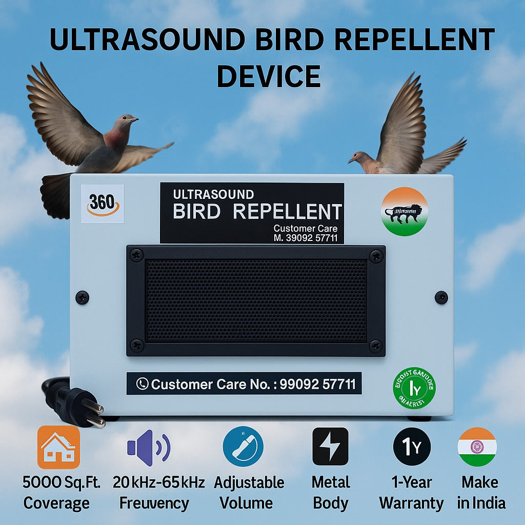 - 🔊 Ultrasonic Technology: Emits high-frequency sound waves that disturb and deter birds without harming them.